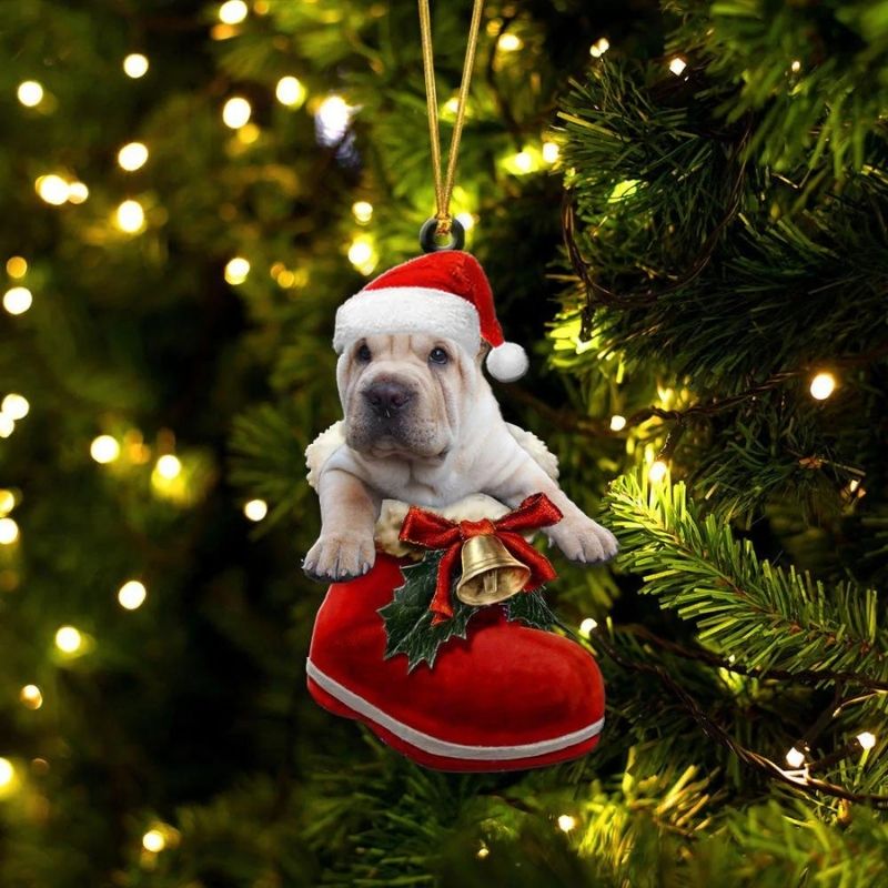 Shar Pei Terrie In Santa Boot Christmas Hanging Ornament SB163