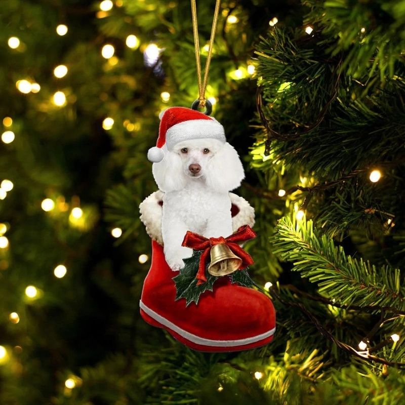 Poodle White In Santa Boot Christmas Hanging Ornament SB175