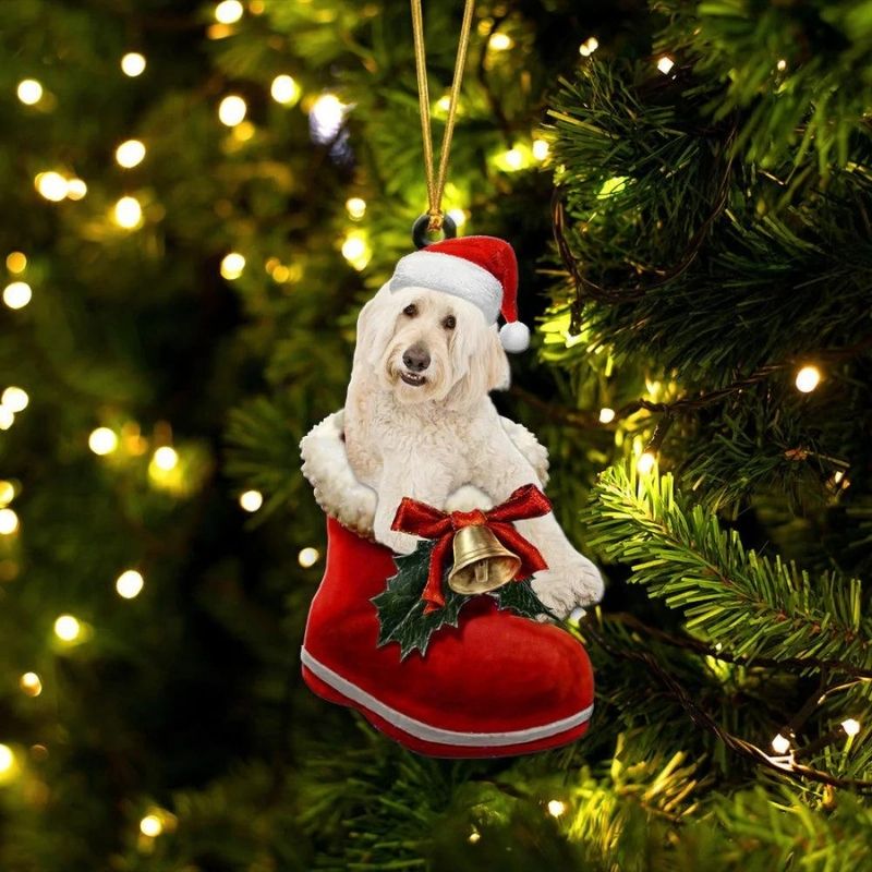 Goldendoodle Cream In Santa Boot Christmas Hanging Ornament SB179