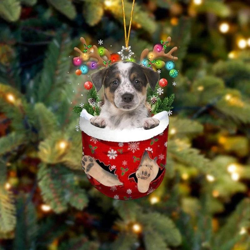 Blue Heeler In Snow Pocket Christmas Ornament SP065