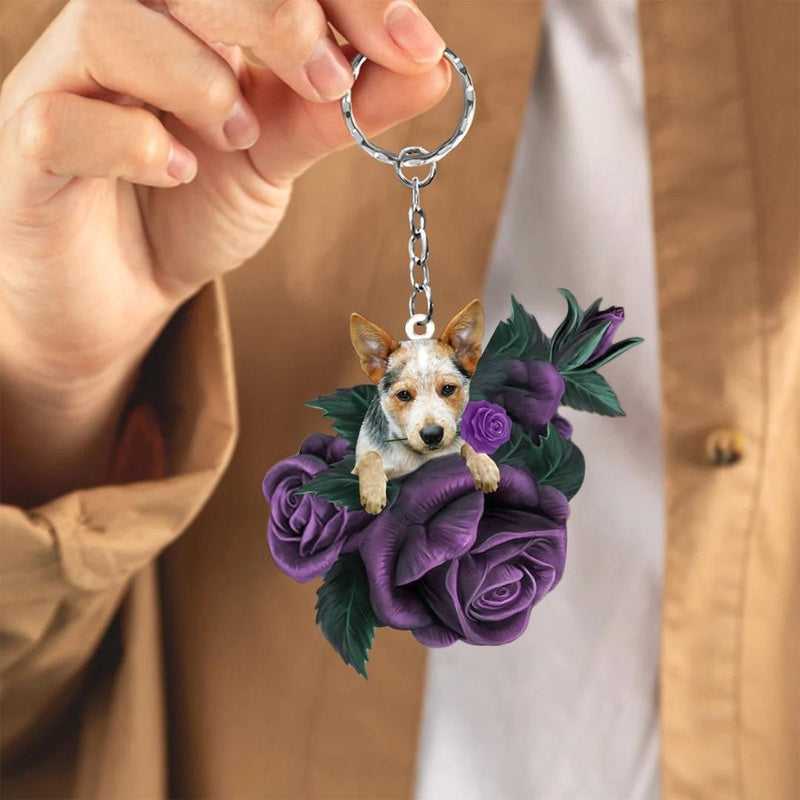 Heeler In Purple Rose Acrylic Keychain PR092