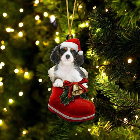 Cavalier King Charles Spaniel Tri-color In Santa Boot Christmas Hanging Ornament SB191