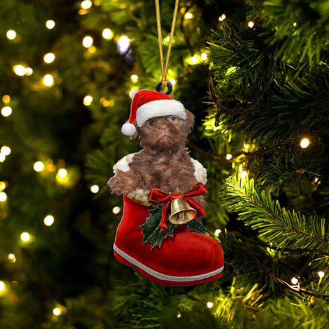 Shih Tzu Liver In Santa Boot Christmas Hanging Ornament SB202