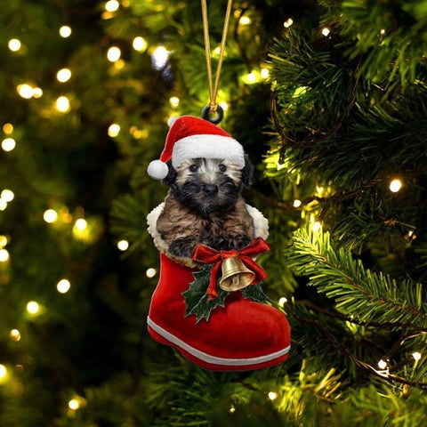 Soft-coated Wheaten Terrier In Santa Boot Christmas Hanging Ornament SB161
